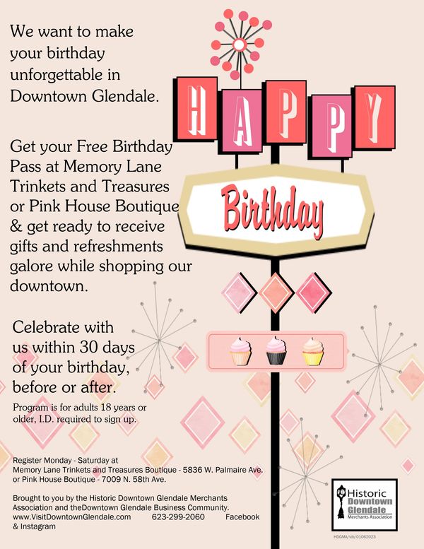 Celebrate your birthday with us and be showered with gifts and discounts from businesses all around Historic Catlin Court and the Old Towne Districts.