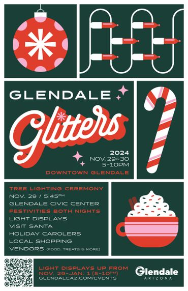 Held on Friday and Saturday evenings in December through December, you will enjoy make and take activities, late night shopping and dining, Santa's Village and the 31st Annual Glendale Glitters Holiday Lights! The event hours are 6-8 p.m.